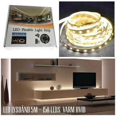 Pynt op med det 2 x 5 meter lange LED strip i varm hvid, der kan udsmykke der hvor du måtte ønske et varmt hvidt lys i din boligindretning.