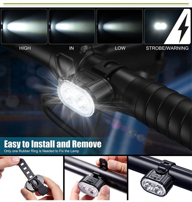 Baglygte – har 5 forskellige indstillingsmuligheder, low, medium, high og 2 forskellige strobe indstillinger.Baglygten er let at monterer med det medfølgende Quick-Strap gummirem og er med 300mah batteri.
