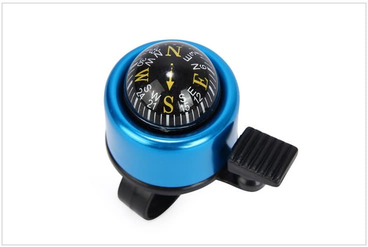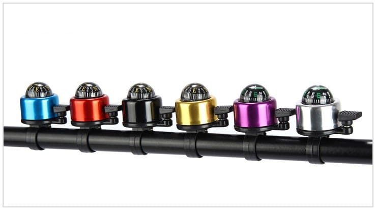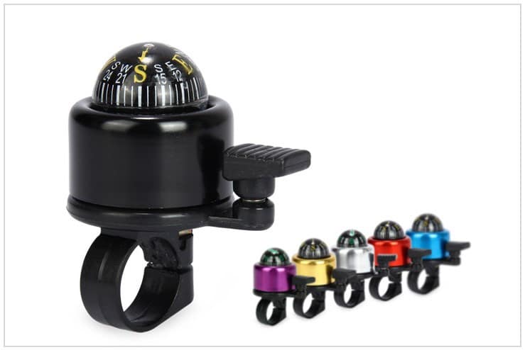 Cykel ring klokke sort med kompas til 22.2 mm styr – smart lille cykelklokke – flot og farverig.