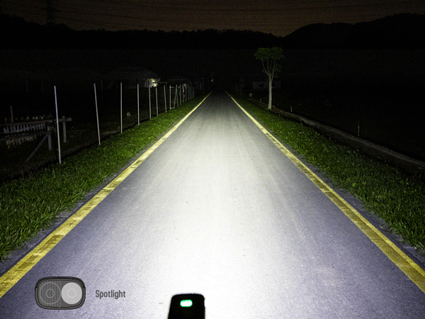 Udgangen er låst ved 50 lumen for synlig synlighed, når omgivelserne er godt oplyst. Efter solnedgang eller når man går ind i en tunnel, skifter udgangen til fuld for aktiv belysning.