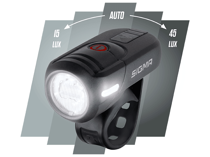 SIGMA Aura 45 og Nugget II cykellygte sæt er et rigtig godt sæt med en kraftig forlygte fra tyske Sigma, der leverer 45 lux, hvilket giver en lysstyrke på ca. 55 meter foran dig og din cyklen. Indbygget lyssensor der automatisk tilpasser lysstyrken til det omgivende lys