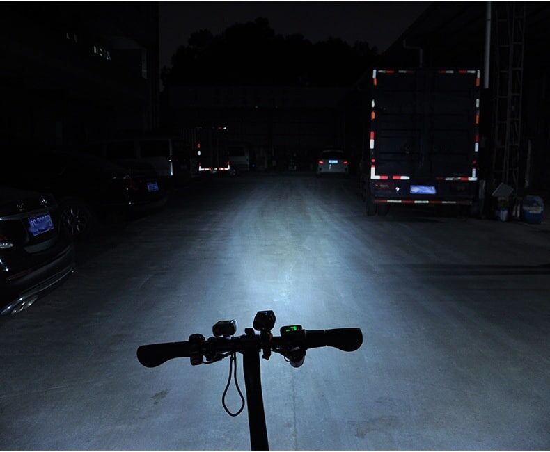Vores COB Led cykellygte med 2 kraftige Led lys er en kraftig cykel forlygte som giver et super godt lys og som kan hamle op med de mindste MTB lygter. Lygten afgiver 800 lumen og har en lystid på mellem 3 og 12 timer afhængig af lygtens indstilling.
